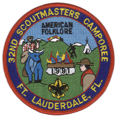 1991. JACK QUINLAN, Camporee Chief, had "American Folklore" as his theme. This Camporee will go down as one of the coldest on record. The wind chill factor placed the temperature in the "teens." Many warm fires were present to soothe the body, but the spirit was never broken. We all remember the arena show with all of our favorite Legends and Heroes present. Right from the start, Jack said: "It will be no sweat."