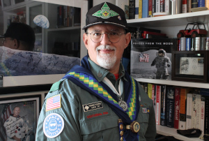 2017. FERNANDO GUTIERREZ. I have always been a complete and unrepentant space geek. One of my earliest memories is the live TV broadcast as Apollo astronauts returned to Earth, watching as those giant parachutes opened and their capsule drifted down to splashdown in the ocean. I can sit and watch the NASA channel for hours and am fascinated by all aspects of the space program; past, present, and future. I know that this is a fascination shared by most children and many adults, so I thought my camporee would be a great opportunity to get together and celebrate our shared love of space. To this end, I chose “Scouting the New Frontier: The Moon, Mars and Beyond” as my theme. At the Camporee we included planetarium shows to show case the wonders of space and space exploration, ‘Mars rover” races where teams worked through obstacles, and were fortunate to be able to share the weekend with our keynote speaker and ‘man in the spacesuit’, F. Robert Smith of NASA, who has worked on several iconic space programs, and who also happens to be a dedicated Scouter. I can honestly say that I was “over the moon” to see Scouts, Scouters and Parents having a great time celebrating a theme close to my heart. Ex Astris, Scientia!